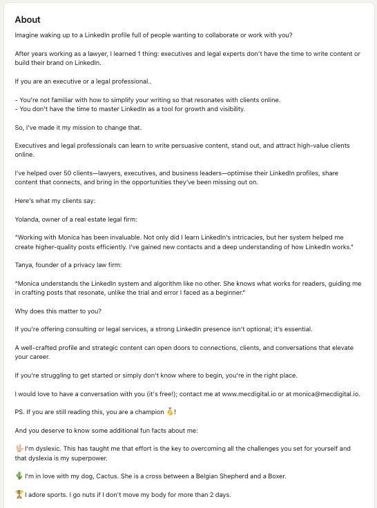 This is one of the most effective aspects of LinkedIn profile optimisation for lawyers.